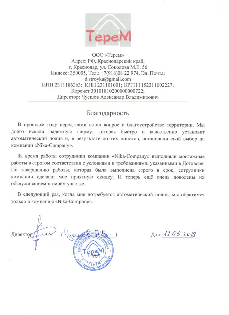 После, Вы обратитесь в другие компании за расчетом, а потом примите решение, где заказывать автополив: у нас или у них. Хорошо?